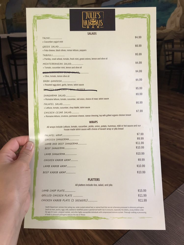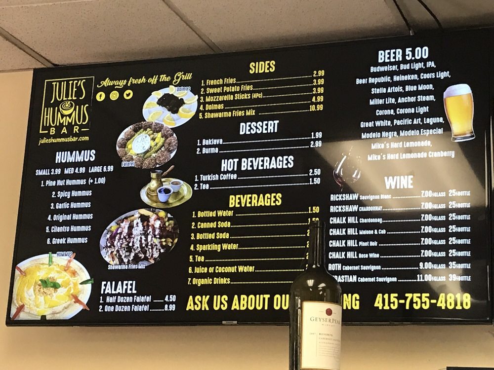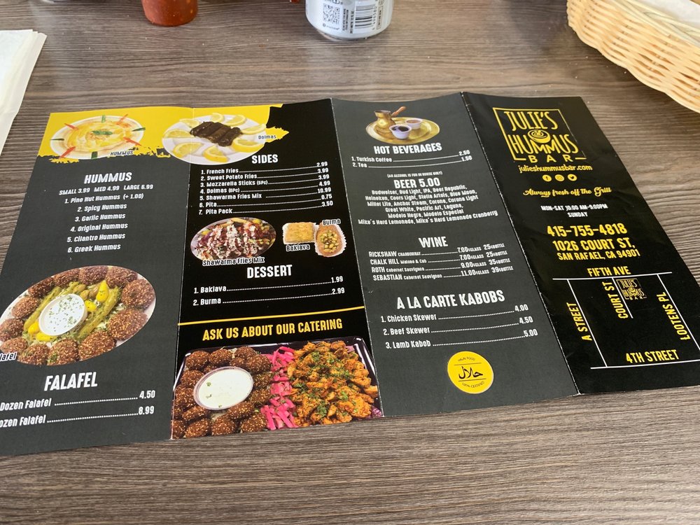 Julie's Hummus Bar & Grill Menu